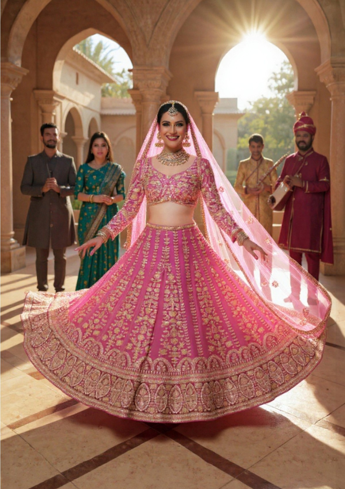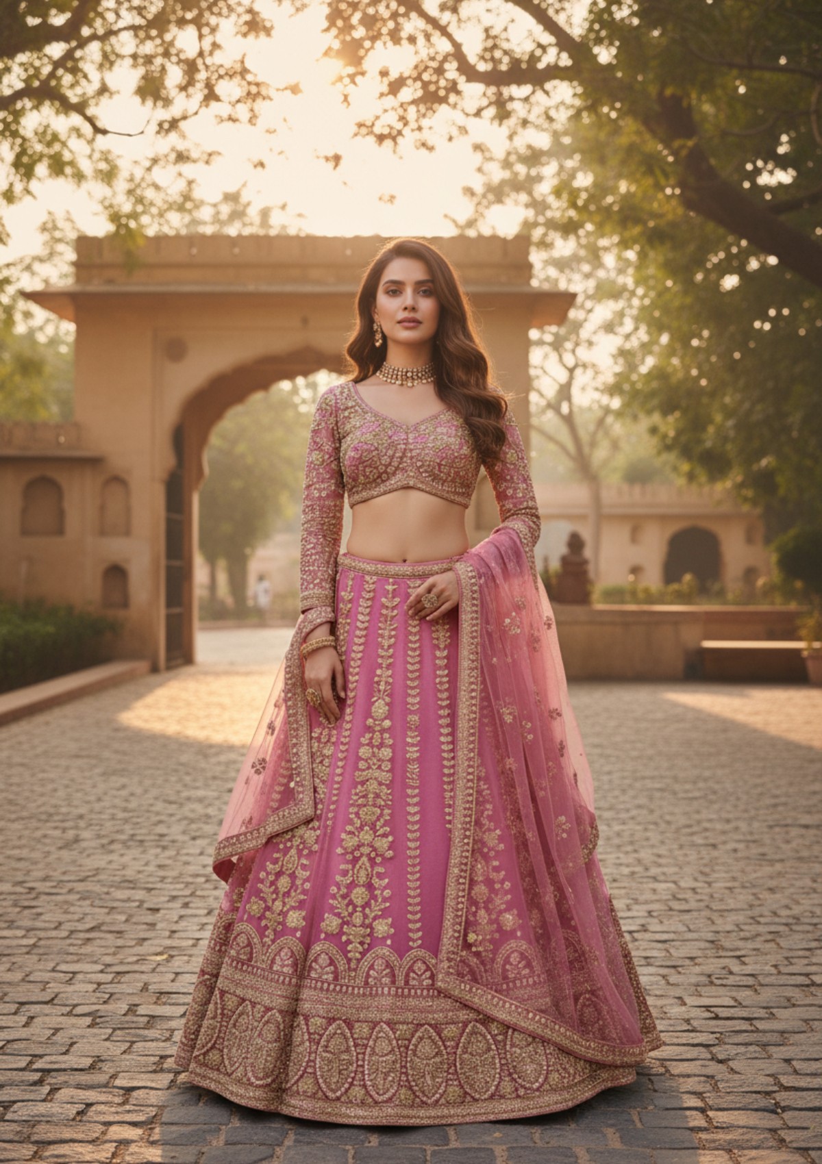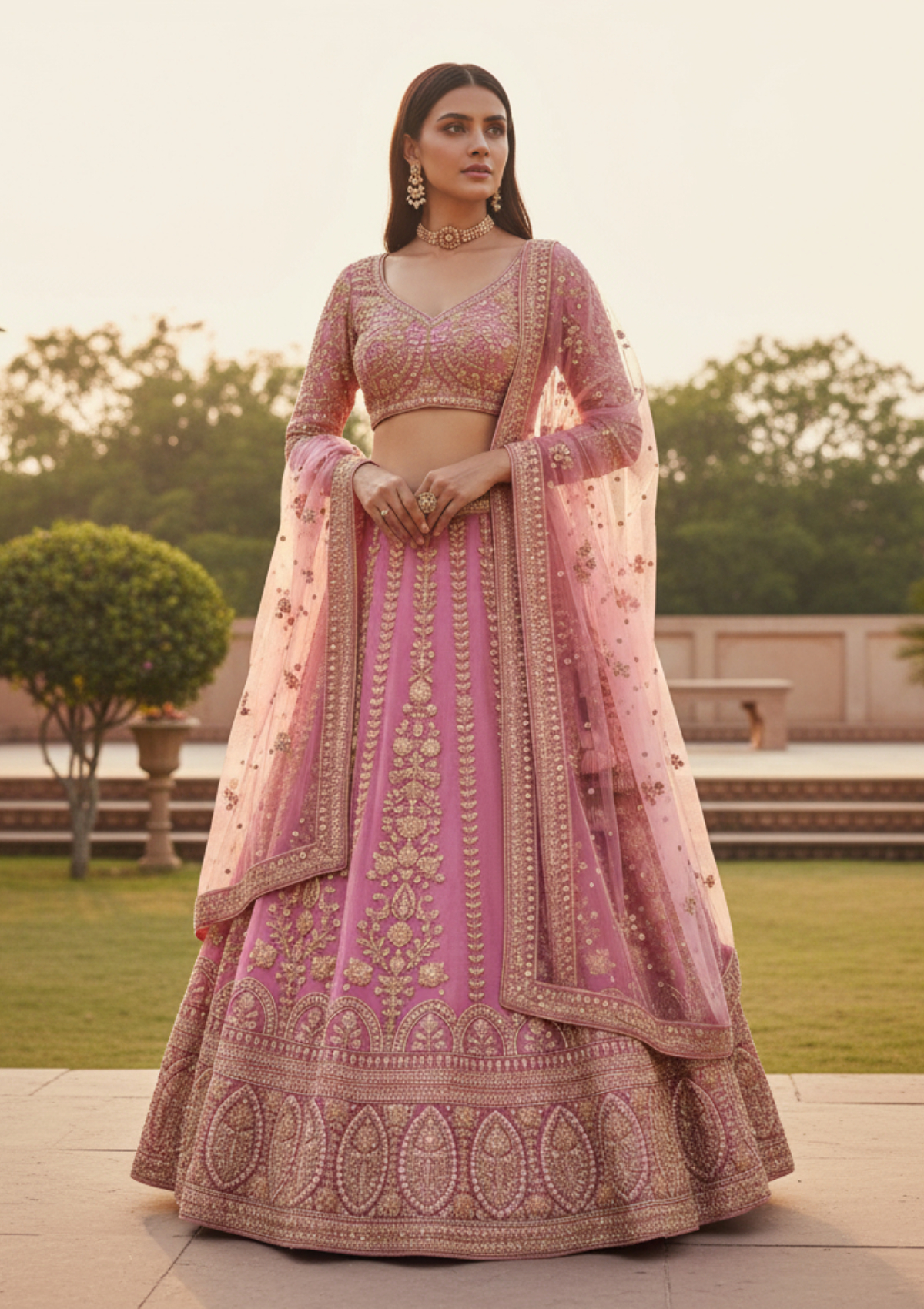 • Orchid Pink Color: A regal hue that enhances your bridal glow, creating an unforgettable impression.