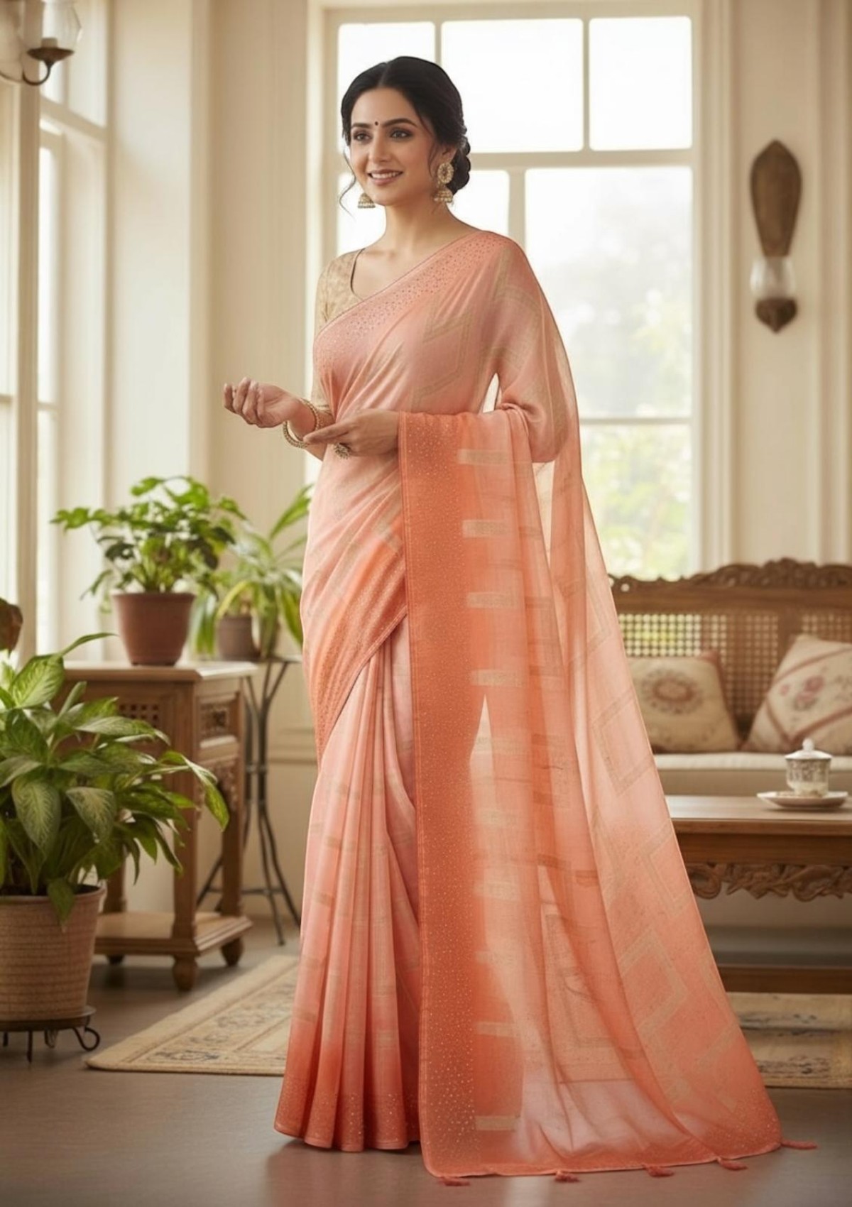 • Pure Chiffon Fabric: Lush, lightweight, and breathable, making it ideal for day-long wear and enabling graceful movement.