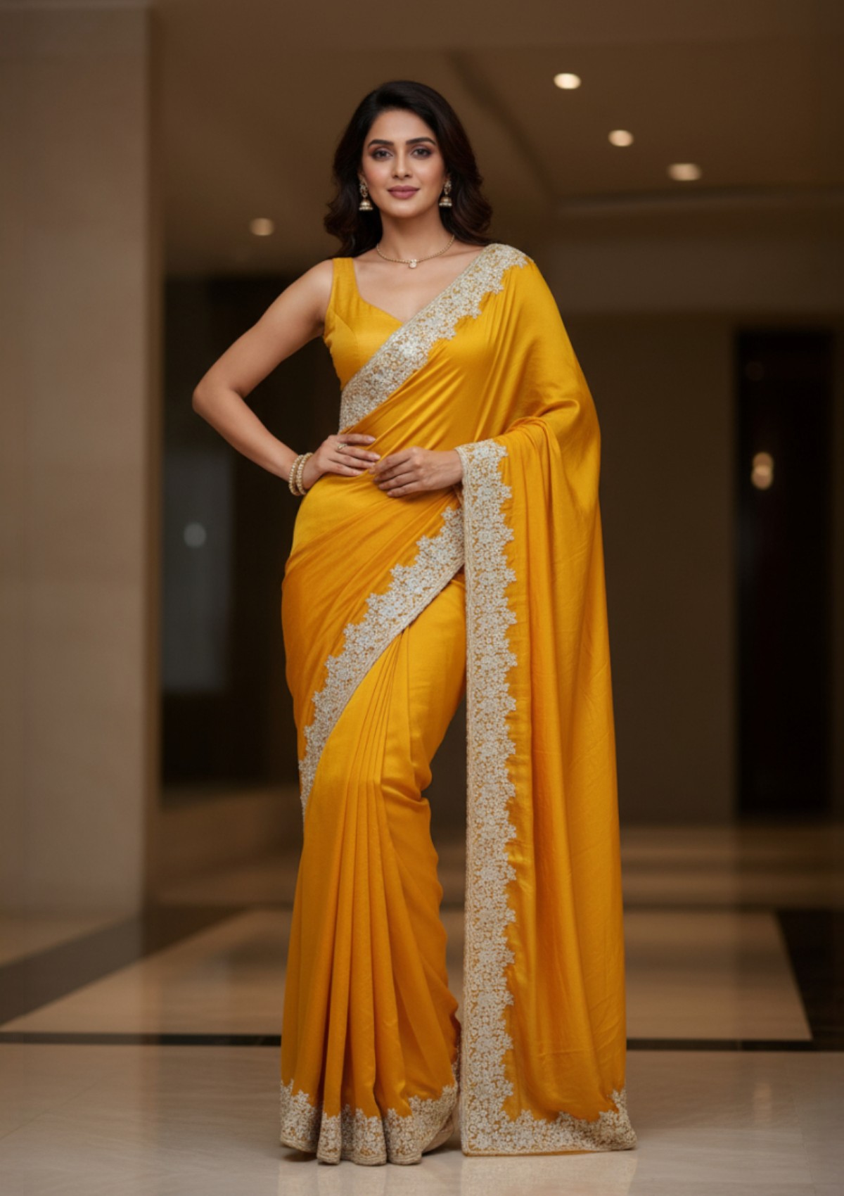 Step into the spotlight with the luxurious Fendy Silk Saree, a stunning addition to your wardrobe that promises elegance and charm. Imagine draping yourself in richly colored silk, adorned with delicate thread embroidery that tells a story of tradition and craftsmanship. Perfect for weddings, festivals, or intimate gatherings, this saree is your passport to elegance, allowing you to style it traditionally or with a modern twist.
